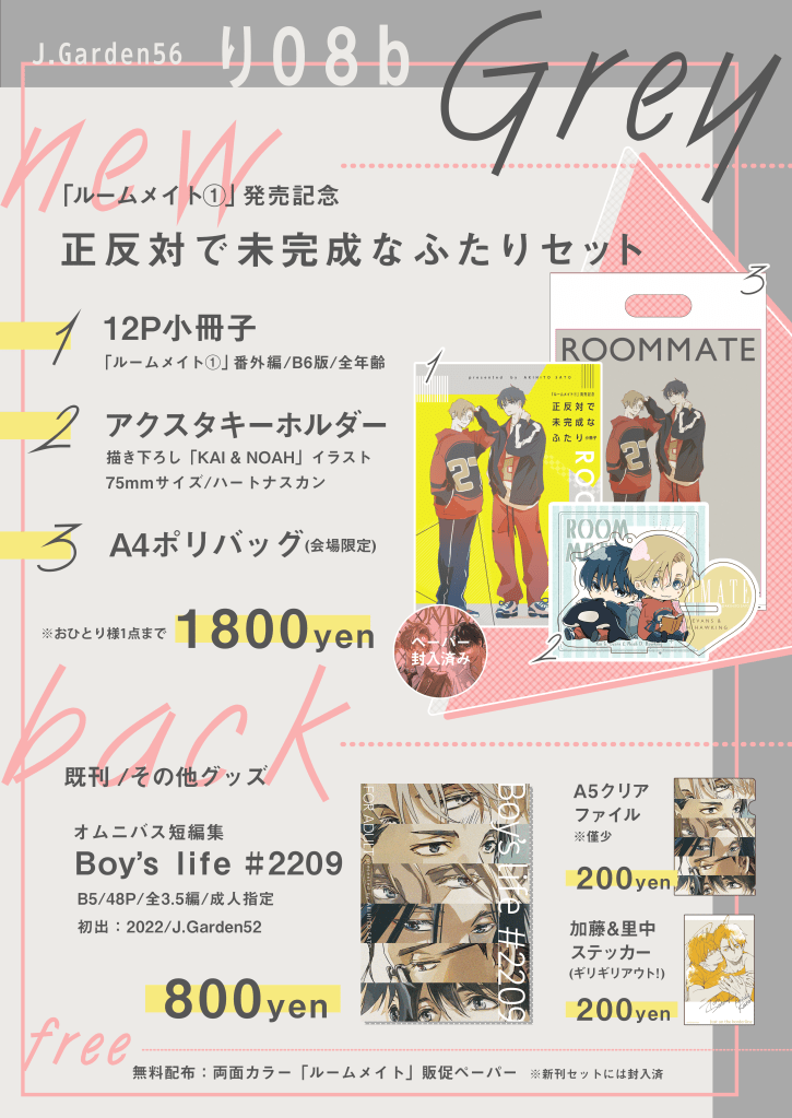 TAKE FREEの販促ペーパーについては物品の数よりたくさん刷っておりますので、ご購入できなかった場合でも是非お手に取っていただけましたら幸いです。(書き下ろしの漫画などはありません)会場や道端には捨てずに良心的なお取り扱いをいただけますと幸いです。是非布教に使ってくださると嬉しいです。※ペーパーは一部webに転用する予定です